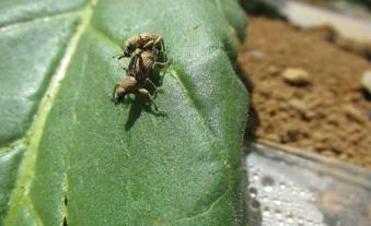 据悉,由于持续一个多月来的干旱,导致安龙县200亩红花大金元烟田烟株出现茎基部腐烂、植株萎蔫枯死的症状,同时,海子烟站多块烟田出现了大灰象甲的危害,且进入了成虫交配高峰期。