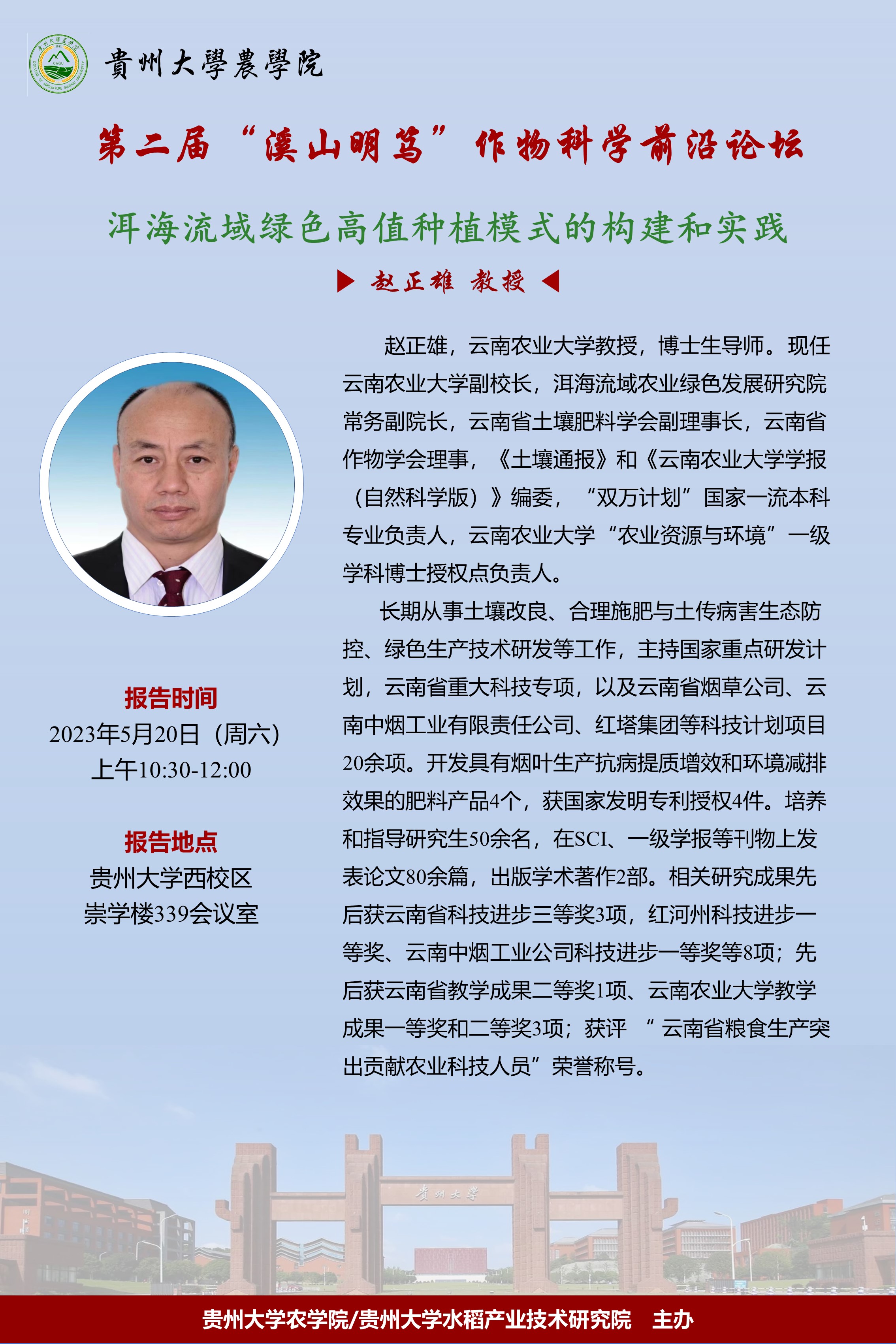 2023年5月20日 第二届“溪山明笃”作物科学前沿论坛——云南农业大学赵正雄教授“洱海流域绿色高值种植模式的构建和实践”