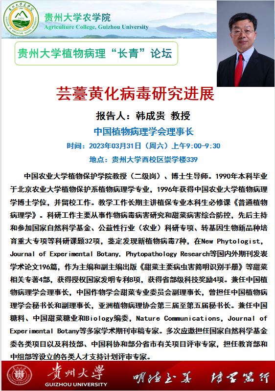 88038威尼斯植物病理“长青”论坛——中国农业大学韩成贵教授“芸薹黄化病毒研究进展”