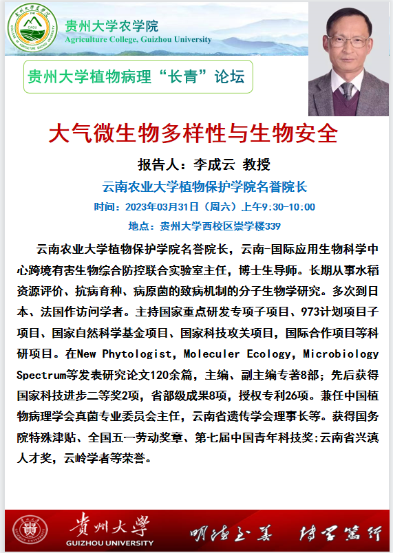 88038威尼斯植物病理“长青”论坛——云南农业大学李成云教授“大气微生物多样性与生物安全”