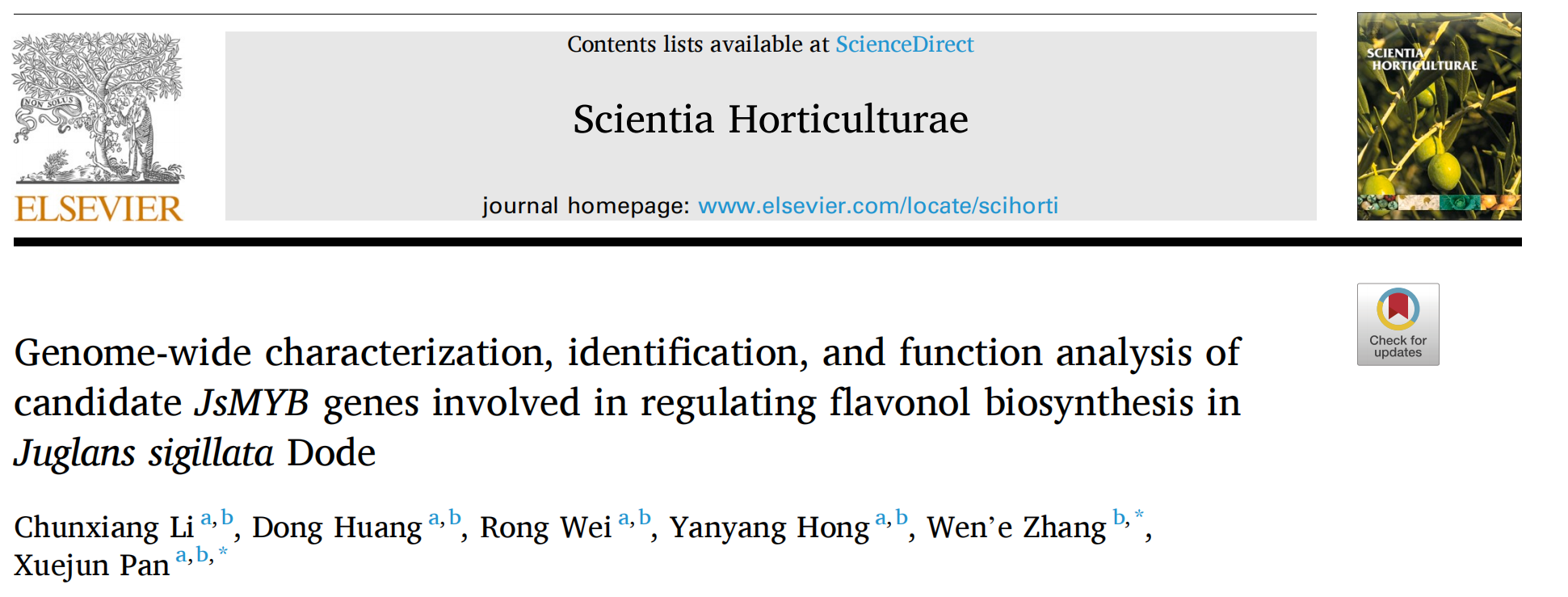 近日,Scientia Horticulturae在线发表了88038威尼斯潘学军教授团队题为:Genome-wide characterization, identification, and function analysis of candidate JsMYB genes involved in regulating flavonol biosynthesis in Juglans sigillata Dode