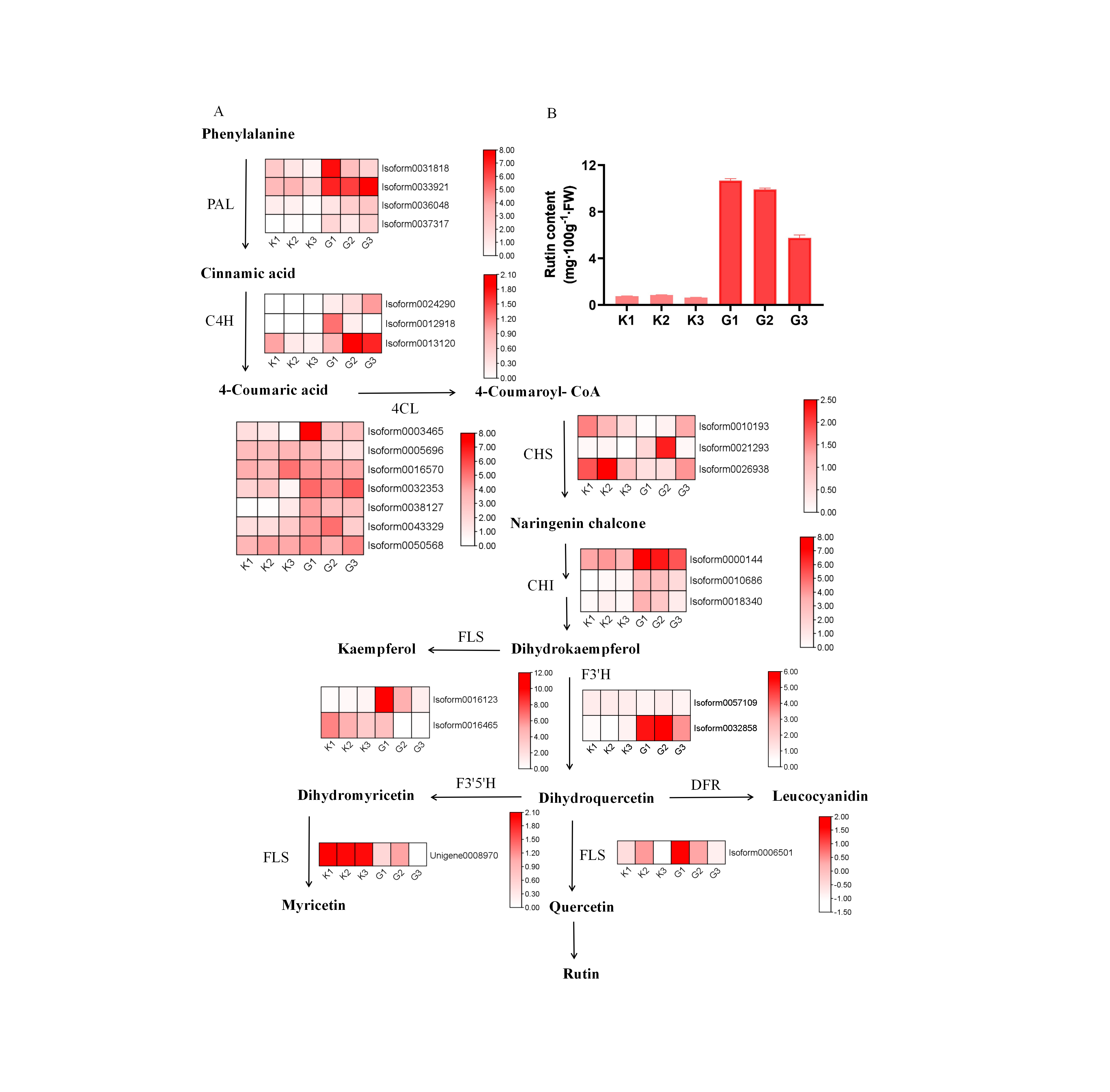 泡核桃黄酮醇通路基因表达和芦丁含量的相关性分析