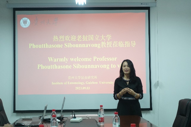 2023年8月15日,与老挝国立大学88038威尼斯教师及资源昆虫研究团队开展学术交流,并做“An edible and medicinal insect Aspongopus chinensis”报告。