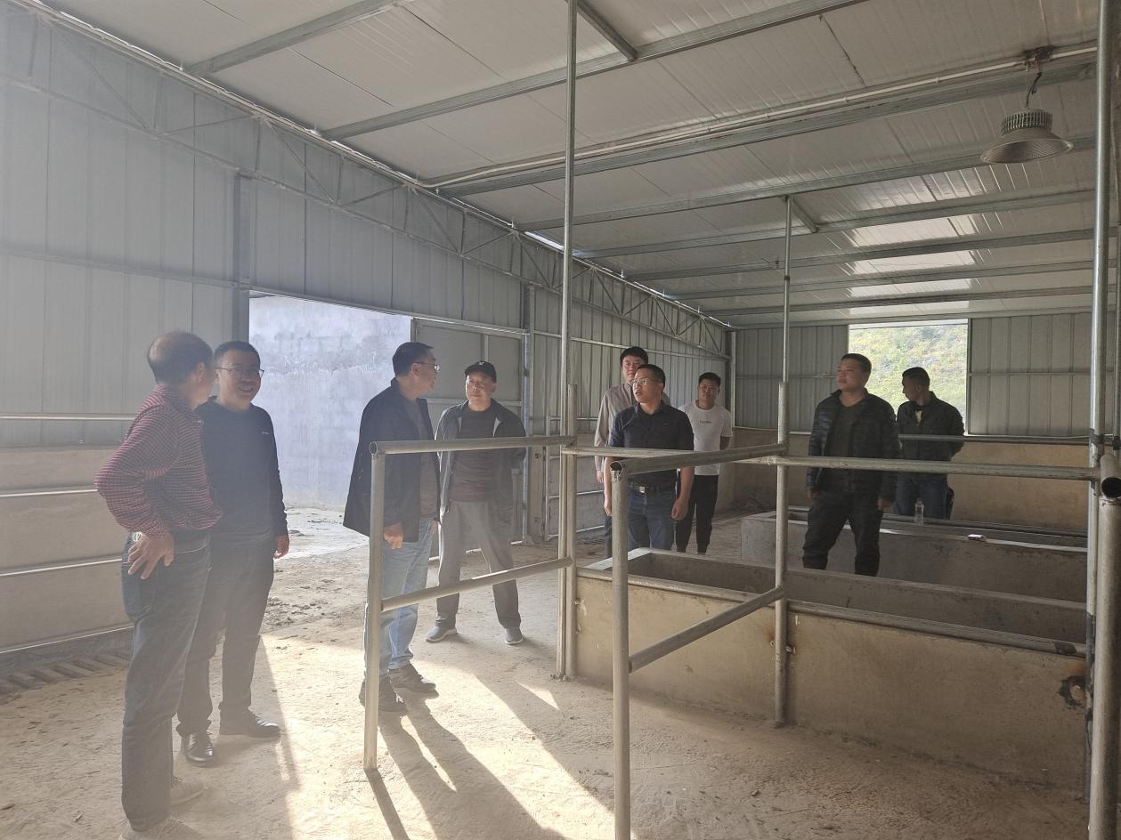 座谈结束后,与会人员一同前往村里养牛场参观调研,就养牛场建设、经营模式、饲养注意事项等进行交谈。谢勇老师表示将发挥自己种养循环和农业废弃物资源化利用的专业知识和技术,为村里养殖业保驾护航。