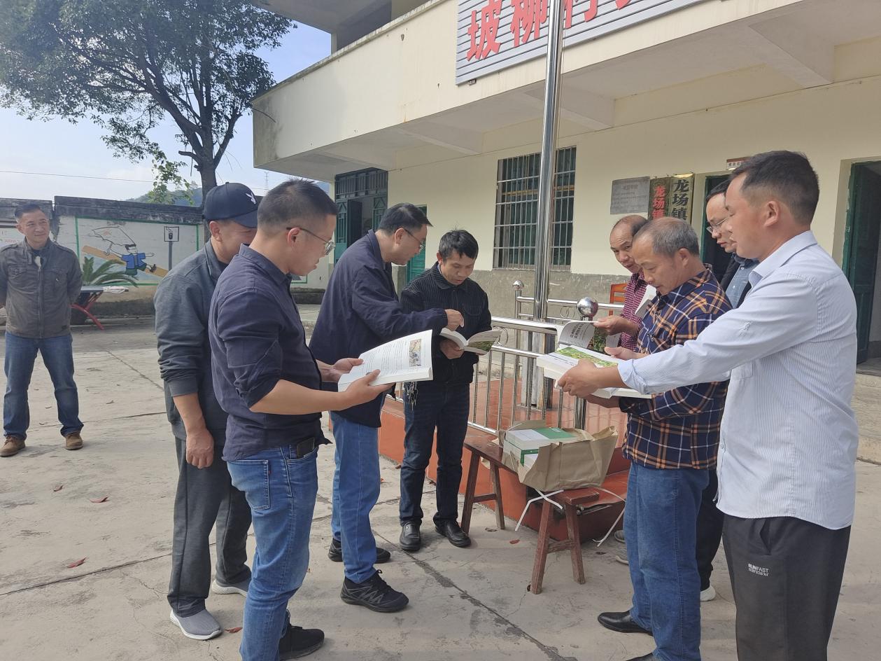 杨刚书记向村委会负责人介绍《贵州特色农业产业实用技术手册(种植业篇)》内容