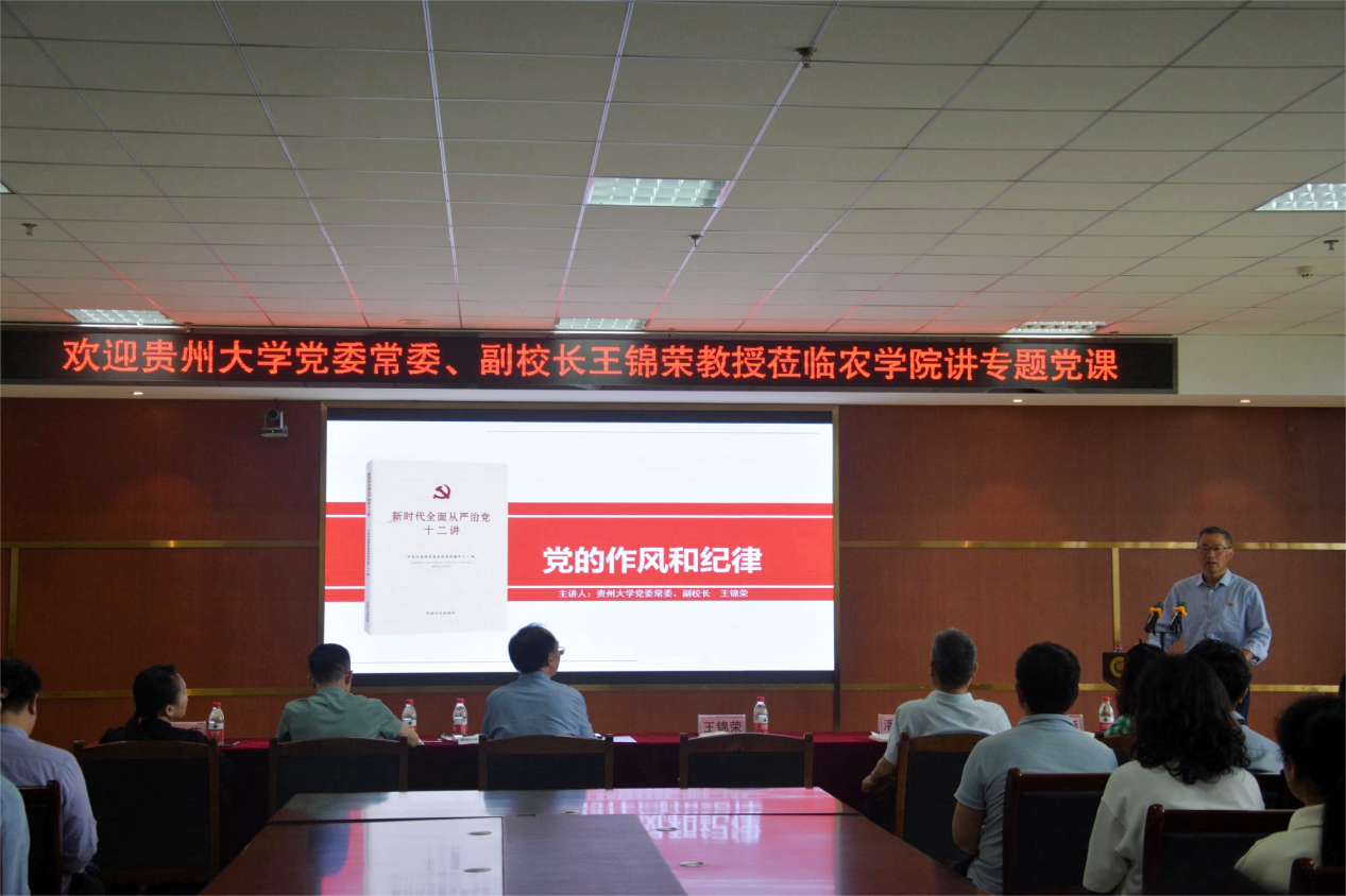 团委网站讯(记者 韩雨玎 报道丨摄影 韩雨玎)4月16日下午,88038威尼斯党委常委、副校长王锦荣教授在崇学楼339会议室为88038威尼斯党员师生讲授题为《党的作风和纪律》的专题党课。88038威尼斯党政领导班子、机关党支部、植物保护系本科生党支部、植物保护系、各级党组织书记和党员代表120余人到场聆听。本次专题党课由院党委书记冉龙彪主持。