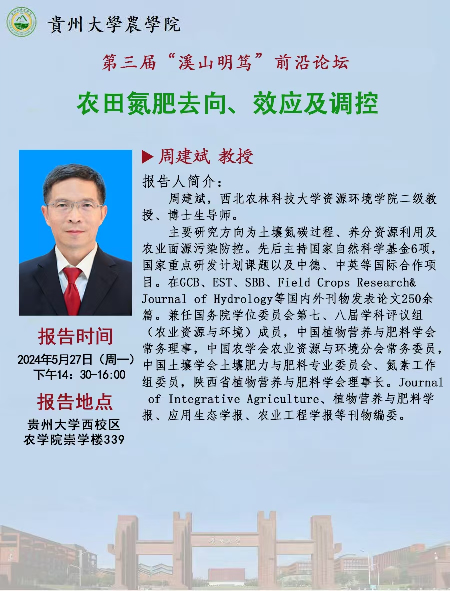 2024年5月27日西北农林科技大学周建斌教授学术讲座:农田氮肥去向、效应及调控