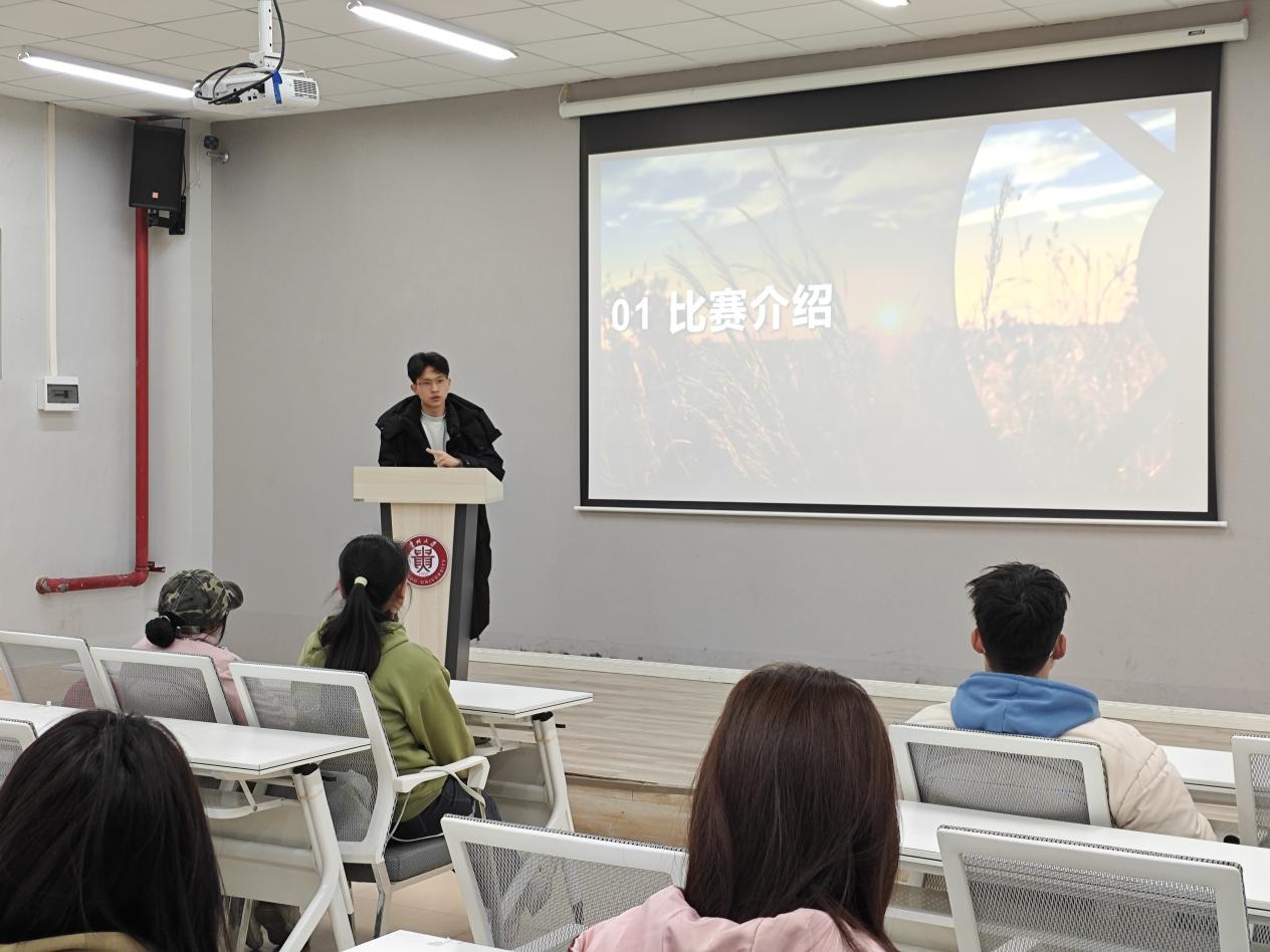 活动中,讲解员徐建雄根据自己的获奖项目对各部分内容进行拆解分析,交流比赛心得,为同学们在参赛过程中遇到的各类问题提供经验。