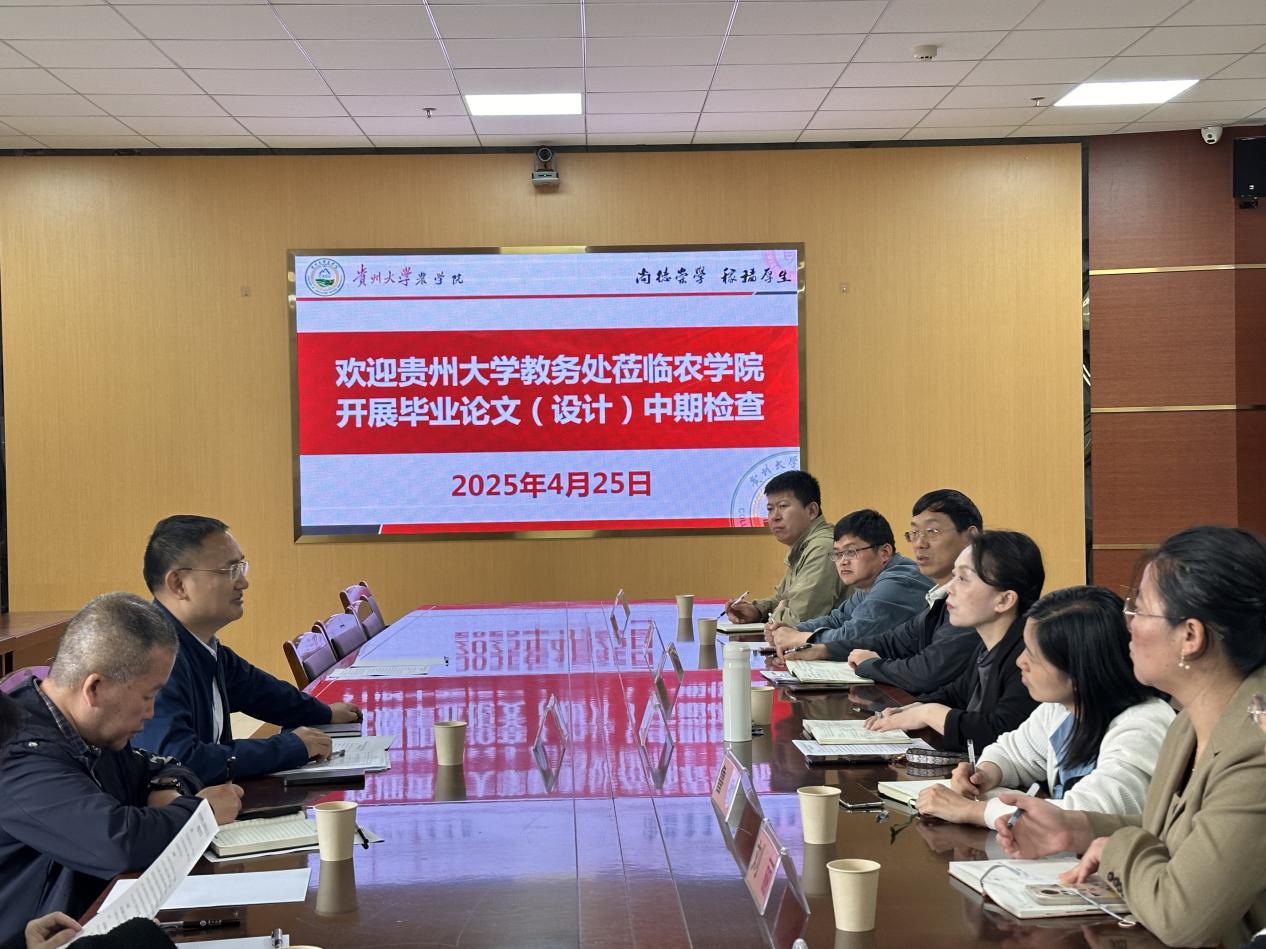 为进一步加强本科生毕业论文(设计)过程管理,确保2025届本科生毕业论文(设计)工作高质量推进,2025年4月25日上午,88038威尼斯教务处副处长黎应飞带领检查组一行4人到88038威尼斯对2025届本科生毕业论文(设计)工作进行中期检查和指导。88038威尼斯副院长(主持工作)张万萍、教学科研科工作人员及各专业负责人参加。