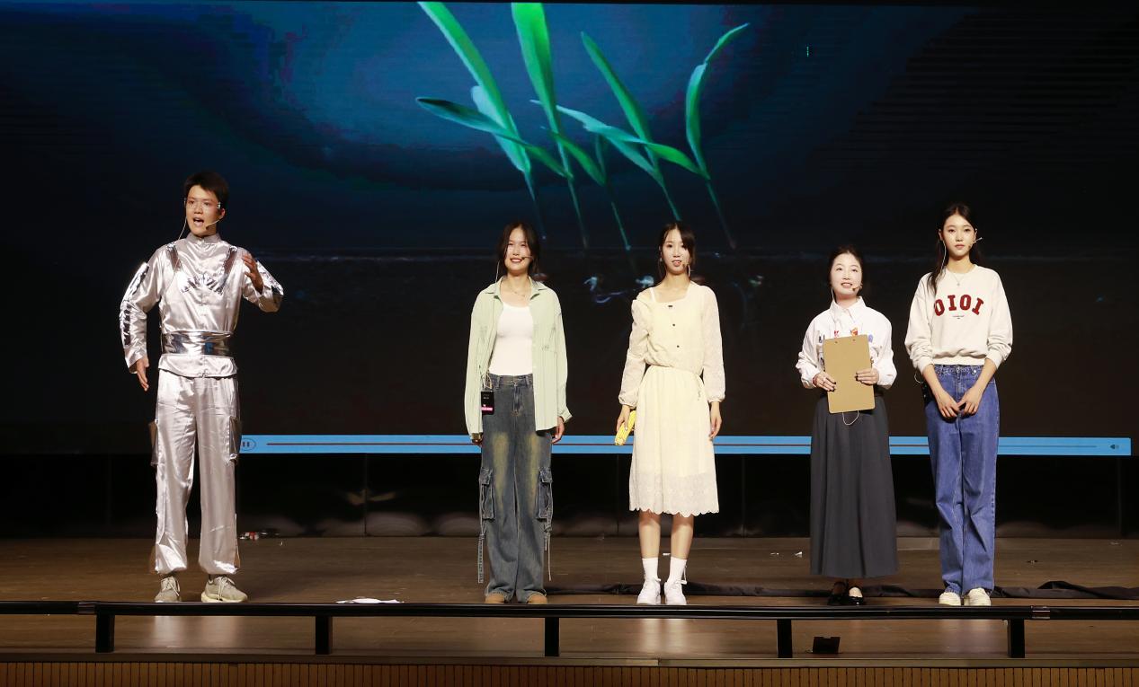 在5月10日的预赛中,《Z世代的心灵绿洲》以独树一帜的选题从全校38支参赛队伍中脱颖而出,以预赛第一的成绩晋级决赛。剧中,20岁的农学专业学生小鹿(演员程诗睿饰)因父亲在水污染调查中意外离世,陷入对校园污水、实验室废水的病态敏感,频繁因他人漠视环保问题而情绪崩溃。一场实验室里的激烈争执戏,将“生态创伤”与“群体麻木”的矛盾赤裸展现,以戏剧冲突直击时代痛点。