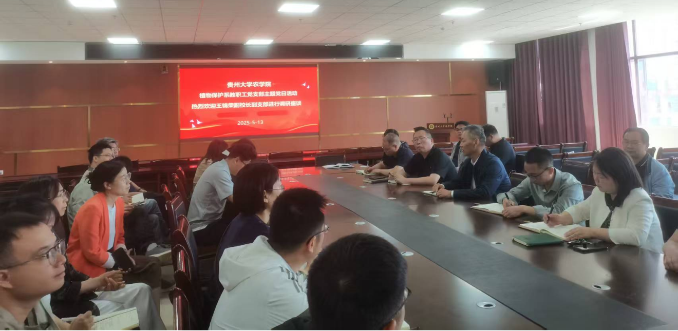 5月13日中午,校党委常委、副校长王锦荣到88038威尼斯植物保护系教工党支部调研,调研交流会在崇学楼339会议室召开,植物保护系教工党支部全体党员参加。