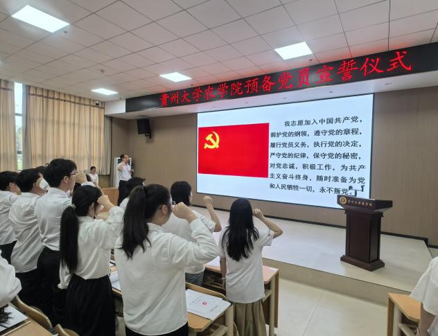 新党员代表王兴昶发言,他表示,作为新时代的农科学子,我们要将党赋予我们的使命、责任与三农事业紧密结合,学好“三农”历史,传承红色基因、赓续奋斗精神、厚植爱农情怀、坚定奉献决心,坚持学习与实践并重,为全面推进乡村振兴、全面建设社会主义现代化国家、实现中华民族伟大复兴的中国梦贡献农科学子的青春力量。
