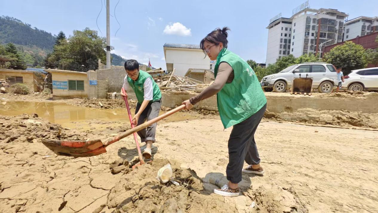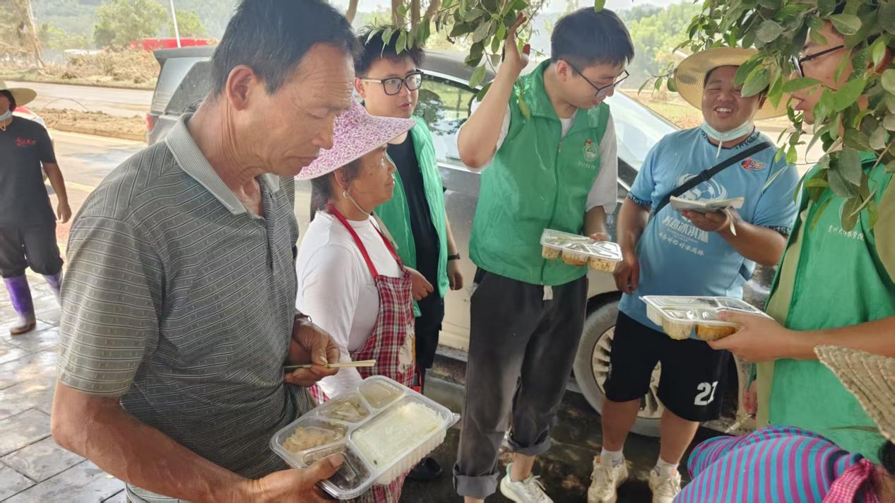 深入灾区清淤送菜,守望相助共克艰难。当天下午,师生团队又马不停蹄奔赴榕江县城周边古州镇场坝社区等受灾严重的村镇,挨家挨户分发蔬菜和药品。洪水退去后的村庄一片狼藉,淤泥堆积,但师生们毫无怨言,一边积极参与清淤工作,一边将物资送到受灾群众手中。一位接过蔬菜的老人眼眶泛红:“家里种的菜全被淹了,你们可真是雪中送炭!”。