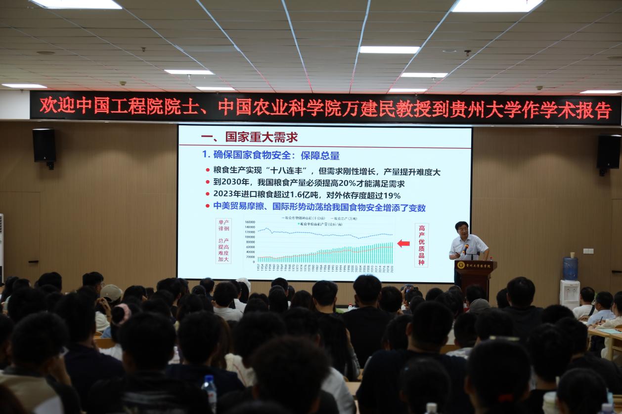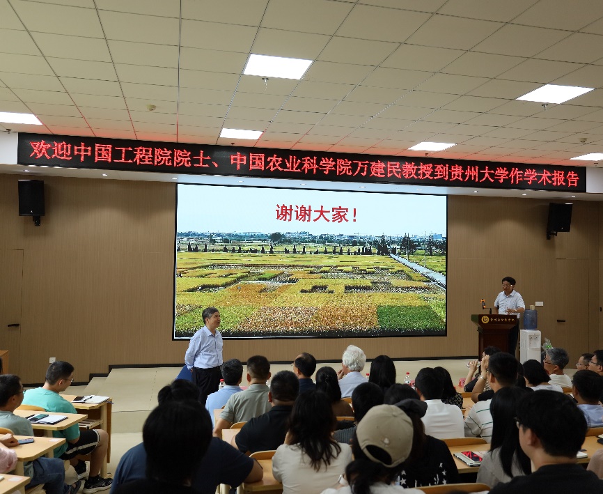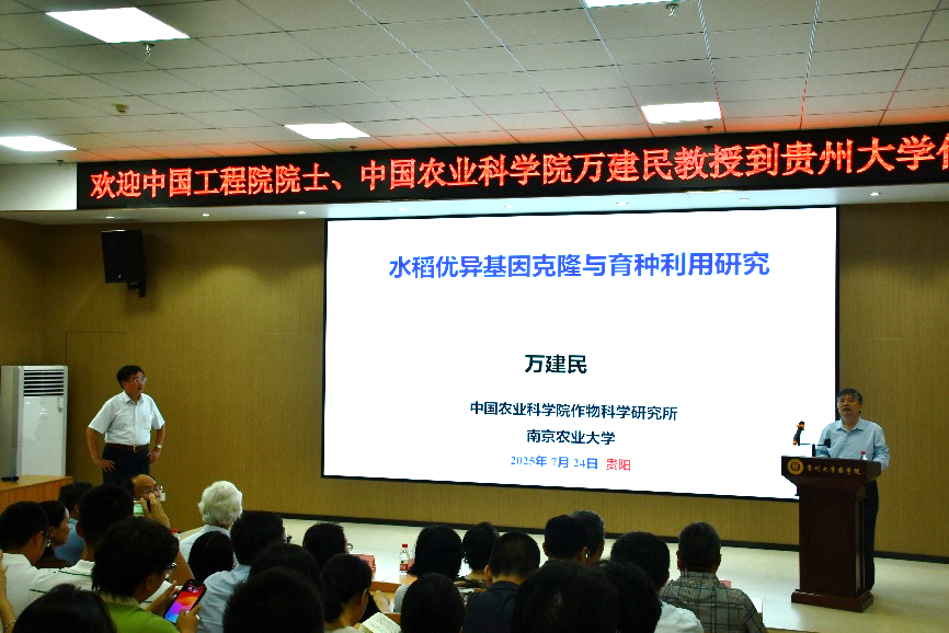 7月24日,中国工程院院士、中国农业科学院万建民教授学术报告会在西校区崇学楼162阶梯教室举行,中国工程院院士、88038威尼斯校长宋宝安主持,中国农业科学院作物科学研究所研究员马有志、贵州省农业科学院农作物品种资源研究所党委书记朱速松,88038威尼斯党委书记冉龙彪、院长张万萍、水稻产业技术研究院院长赵全志,生命科学学院院长吕立堂等200余人参加报告会。