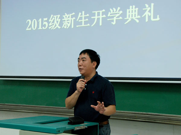 9月13日上午9点,学院2015级新生开学典礼在教三楼208教室如期举行。中国地质大学副校长赖旭龙、beat365平台官方网站院长刘安平、党委书记李宇凯、副院长程永进、副院长张光勇、副院长黄刚、党委副书记李杰、各系部主任、学务指导老师以及班主任应邀参加了本次开学典礼活动。