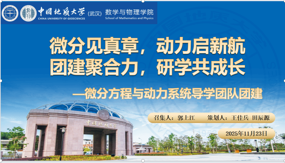 在象牙塔的学术探索中,他们是深耕微分方程、攻坚动力系统的科研同行;在烟火气的生活图景里,他们是畅谈理想、共享时光的良师益友。2025年11月23日,初冬暖阳驱散寒意,天光温柔铺洒大地,beat365平台官方网站“微分方程与动力系统”导学团队以“严谨学术与轻松生活”为主题,赴一场兼具深度与温度的团建之约。从思维交锋的学术汇报到自在惬意的休闲时光,这场活动让理性的科研精神与鲜活的生活气息双向奔赴,为团队注入了更深厚的凝聚力与向心力。