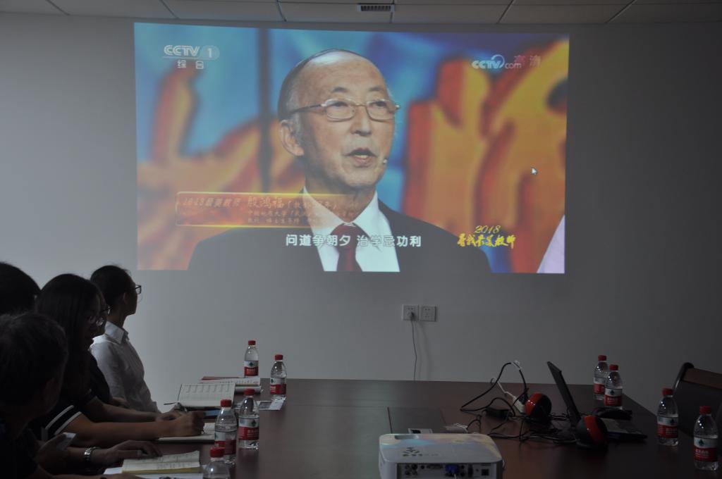 2018年9月10日晚8点,beat365平台官方网站师生代表在教学综合大楼A1505会议室共聚一堂,观看中央电视台综合频道举办的“寻找最美教师”颁奖晚会。学院党政领导、师生代表参加此次座谈会。观看颁奖典礼后,殷鸿福院士身上的矢志报国、求真务实、潜心育人、为人修行等优秀的品质令现场每一位师生深受感动和敬佩。
