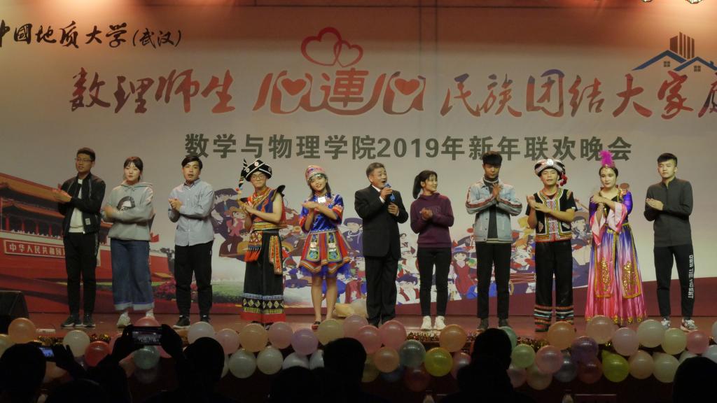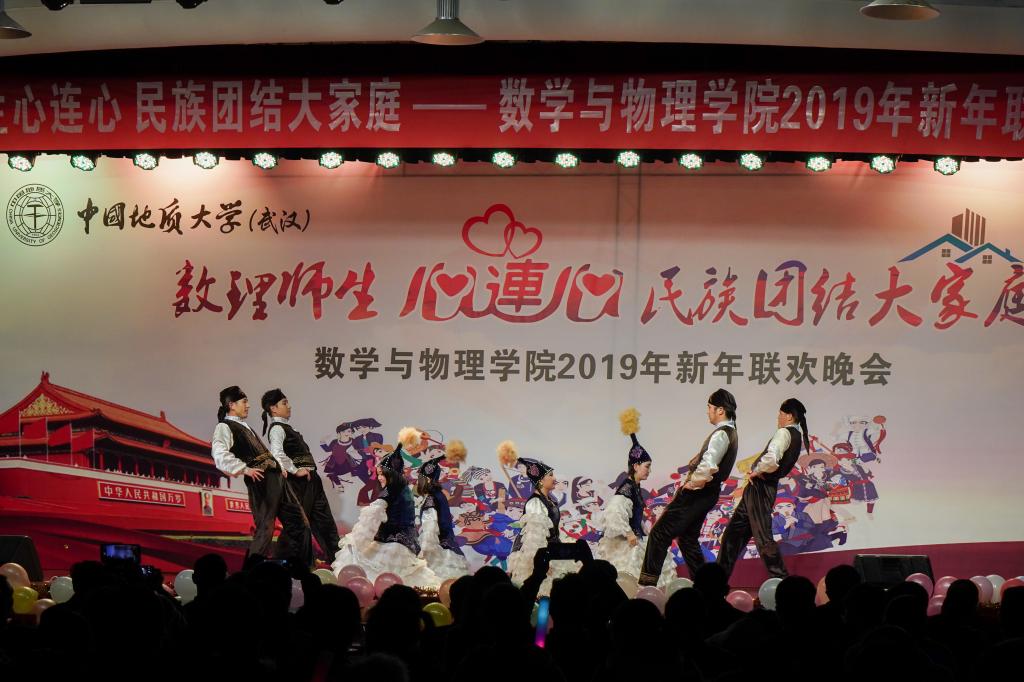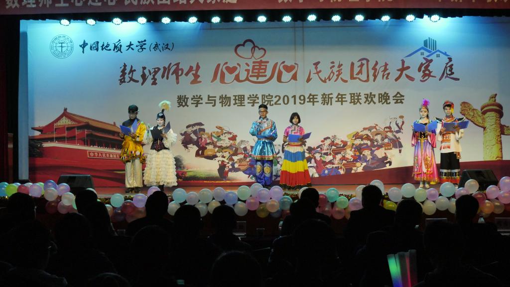 2018年12月20日晚,数理师生心连心 民族团结大家庭——beat365平台官方网站2019年新年联欢晚会在大学生活动中心二楼举行。校党委书记何光彩、党委常委组织部部长储祖旺、党委宣传部部长胡守庚、党委统战部部长唐勤、党委保卫部部长代清风、资源学院党委书记李宇凯、学校办公室副主任刘东杰、监察处副处长李杰、学生工作处副处长苏洪涛、学生工作处副处长蒋怀柳、学生就业创业处副处长陈慧、校团委黄蕾、学工处少数民族学生工作办公室各位老师以及beat365平台官方网站党政班子成员、各系主任、党支部书记、学工组和院直的各位老师与学院学生共同观看了晚会。