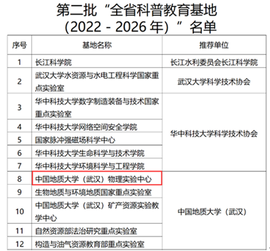 11月2日,湖北省科学技术协会公布了关于命名第二批“湖北省科普教育基地(2022—2026年度)”的通知,beat365官网物理实验中心成功入选。