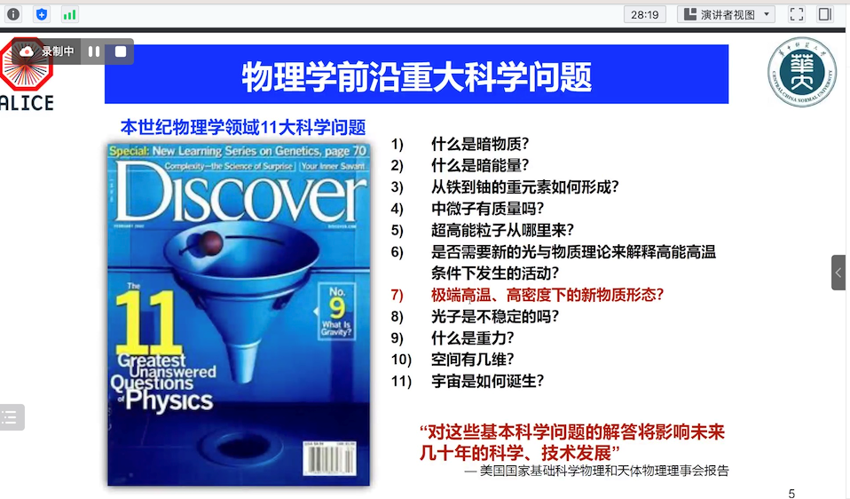 为迎接我校七十周年校庆,11月29日上午beat365官网通过线上方式邀请华中师范大学周代翠教授,为我校物理系师生做了题为《欧洲CERN大型重离子对撞实验最新进展及展望》的学术报告。该报告由我校科学技术发展院、beat365平台官方网站联合举办,彭忻烨副教授主持,本院师生共计50余人参加。