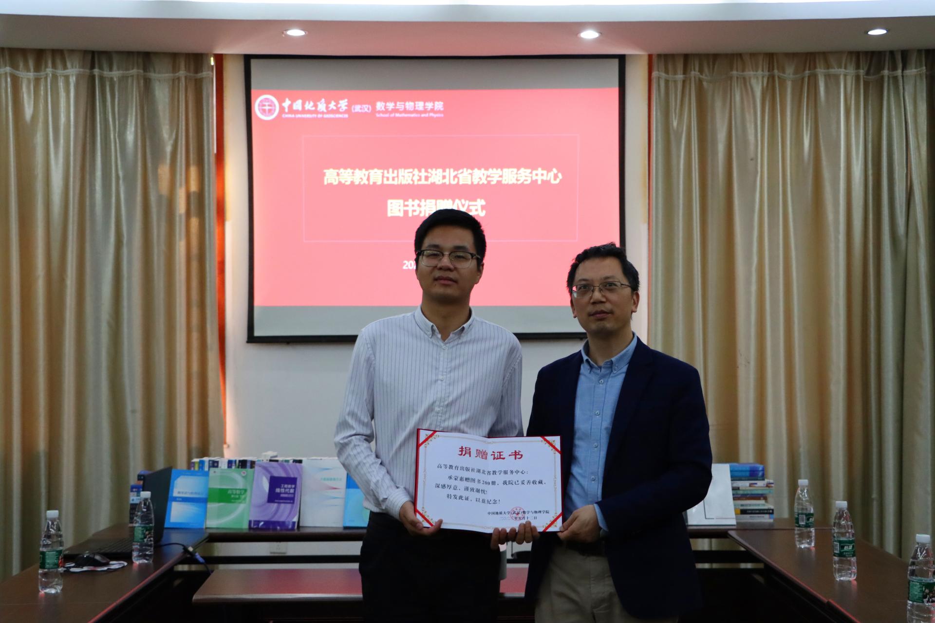 5月12日下午,高等教育出版社湖北省教学服务中心副主任叶望一行来中国地质大学(武汉)beat365平台官方网站调研交流,并向学院捐赠图书200余册。捐赠仪式在迎宾楼第四会议室召开,beat365官网副院长黄刚等参加仪式。