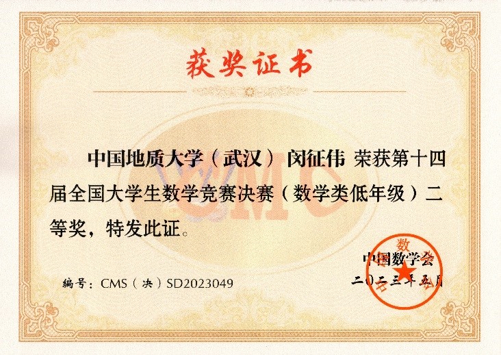 beat365官网121211班(数学菁英班)闵征伟、李嘉祥两位同学在第十四届全国大学生数学竞赛决赛中双双荣获二等奖。