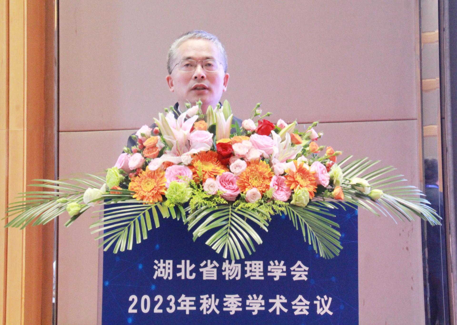 中国地质大学(武汉)党委副书记王林清出席开幕式并致辞。王林清在致辞中谈到我校始终重视物理、数学等基础学科的发展,湖北省物理学会也是担负着物理学以及相关学科繁荣发展的重任,希望以本次会议为契机,搭建湖北省物理学界及相关领域专家学者的交流平台,提高物理学科的学术水平及人才培养质量,促进重大成果产出和产学研成果转化,助力湖北武汉成为具有全国影响力的科技创新中心,为中国实现高水平科技自立自强做贡献。