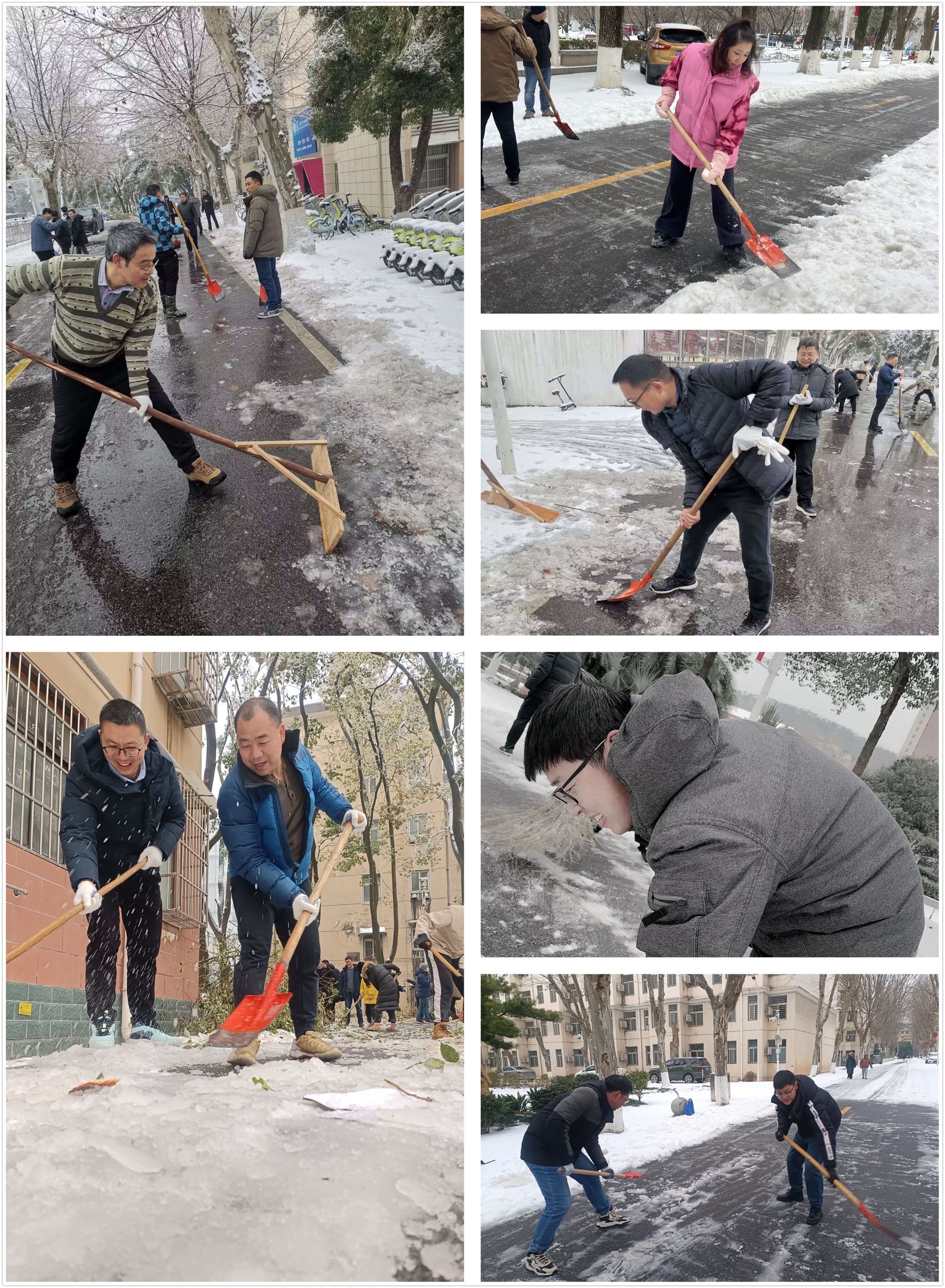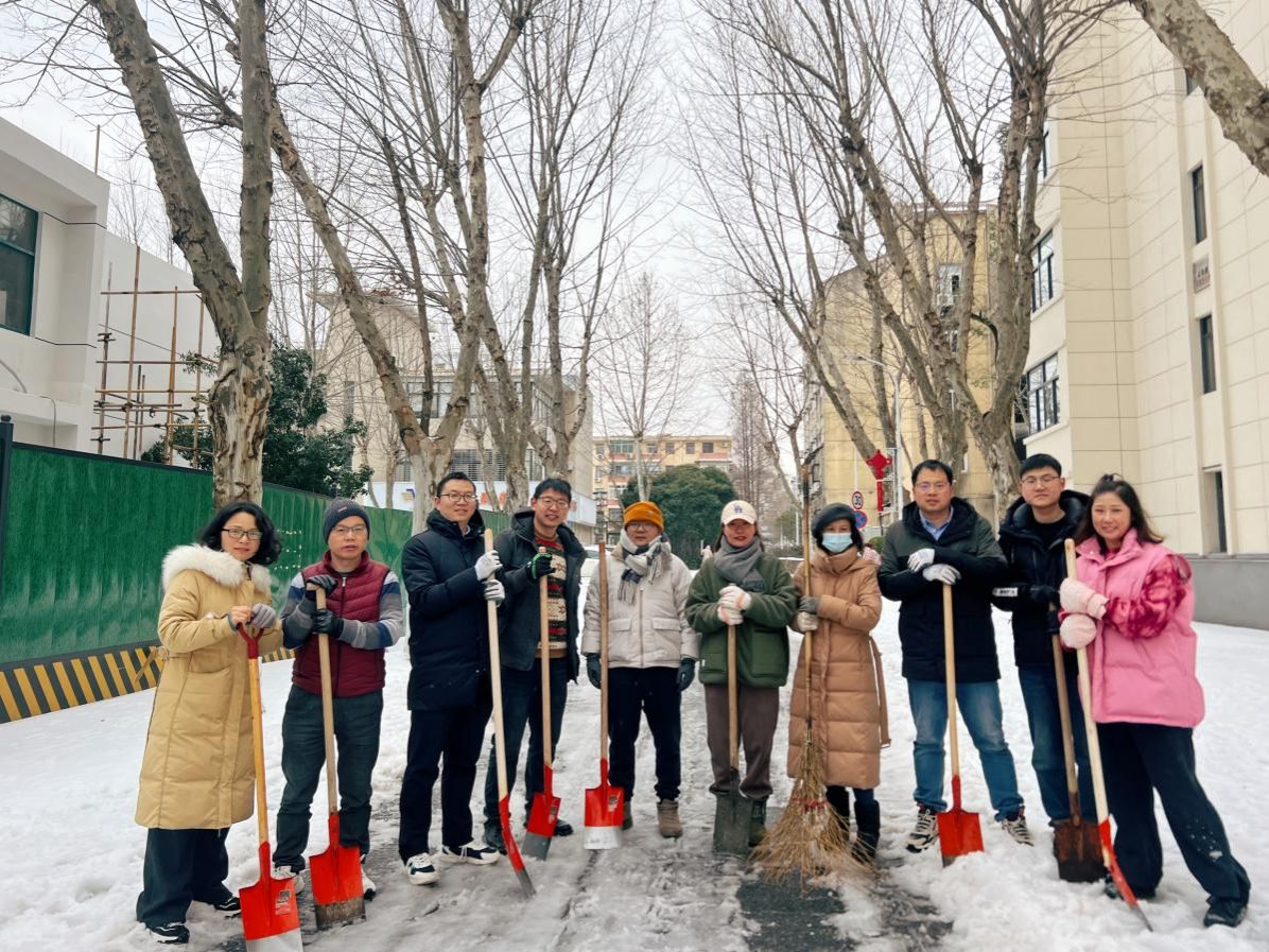 新学期开学在即,武汉再次出现极端雨雪冰冻天气。beat365平台官方网站党委第一时间响应学校扫雪除冰清障志愿服务工作号召,迅速部署,广大教职员工积极踊跃报名,先后共有13人以实际行动战风雪,破寒冰,为师生安全保驾护航,生动诠释了“一个支部就是一座堡垒,一名党员就是一面旗帜”。