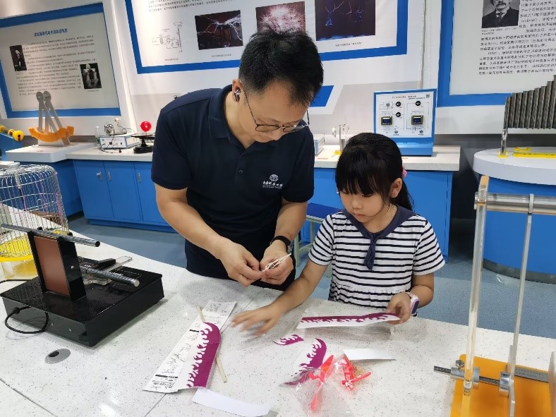 为深入贯彻落实党的二十大精神和习近平总书记关于家庭家教家风建设重要论述精神,进一步丰富beat365官网教职工子女暑期生活,激发青少年对科学探索的兴趣,7月10日上午,由beat365平台官方网站工会和湖北省科普教育基地物理实验中心联合举办的“数理扬帆 科技远航”学院教职工子女暑假科普活动在西区基础楼物理演示与探索实验室成功举行,学院教职工代表及其子女30余人参加活动。