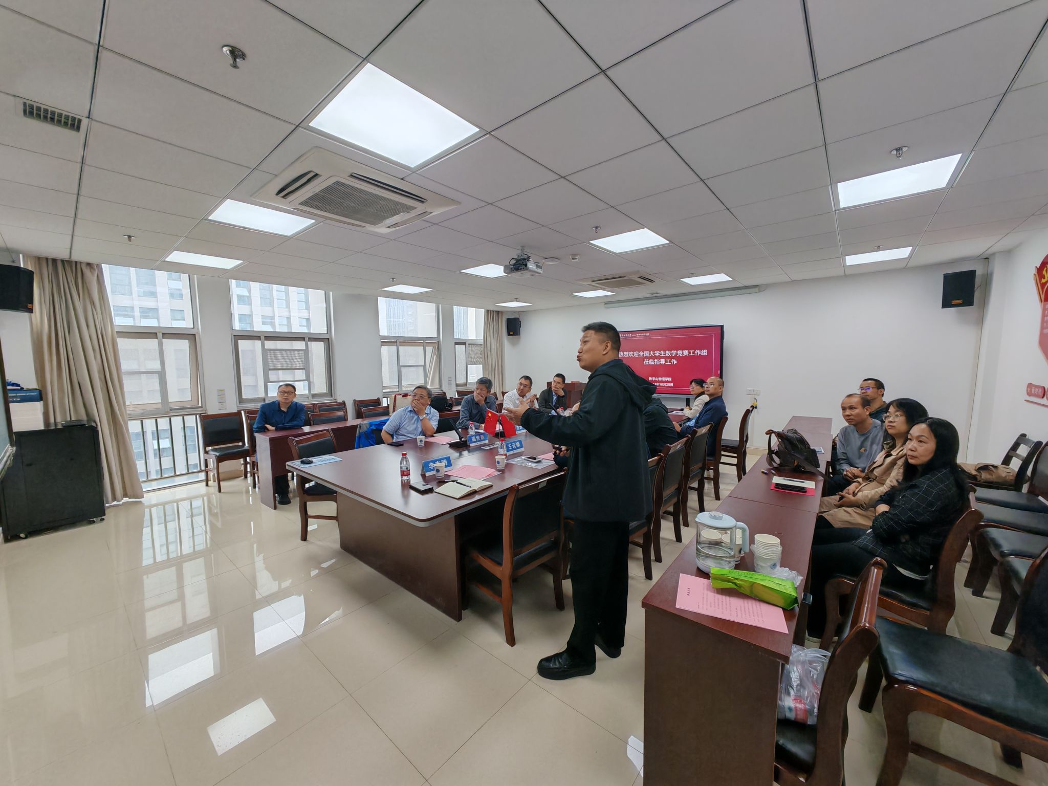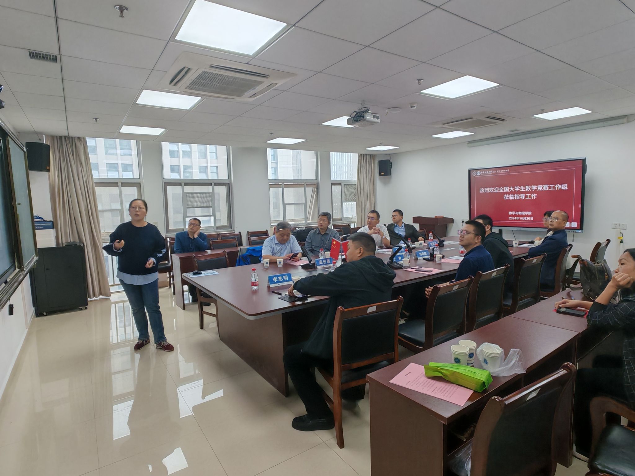 魏周超代表学院对佘志坤教授一行表示热烈欢迎,并重点围绕高水平学科竞赛成果培育,介绍了学校和学院在指导教师团队建设、校级赛事组织、赛前集训、专家指导等方面的具体工作举措。数学竞赛负责人李志明老师和王元媛老师分别从竞赛培训、校内选拔、组织参赛报名、获奖成果和政策支持等方面详细汇报了我校在组织全国大学生数学竞赛中的相关工作和取得的成绩。