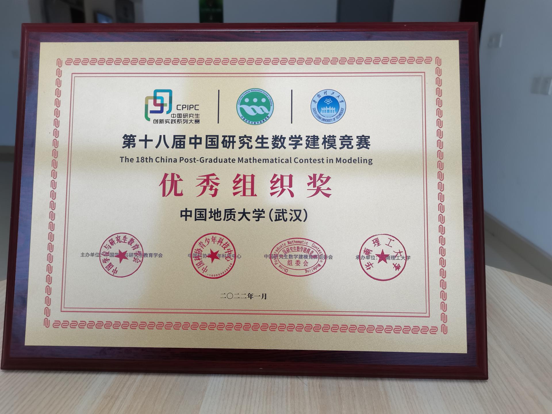 我校获全国研究生数学建模竞赛优秀组织奖及先进个人