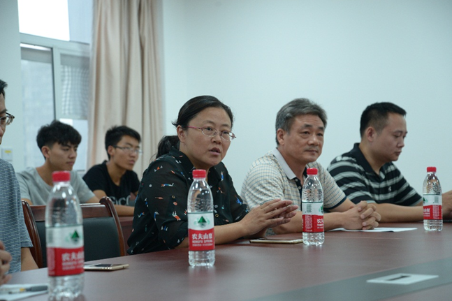 教务处庞岚副处长在致辞中说,高等数学“MOOC” 课程教学团队历时一年半, 在时间紧、任务重的情况下,老师们团结协作、辛勤工作,按时将高等数学(上)“MOOC” 课程成功上线,希望老师们再接再厉,继续完成高等数学(下)“MOOC” 课程的制作。她希望通过MOOC课程的教学将分层教学落到实处,力争在成功开课两次之后,申报国家在线精品课程。