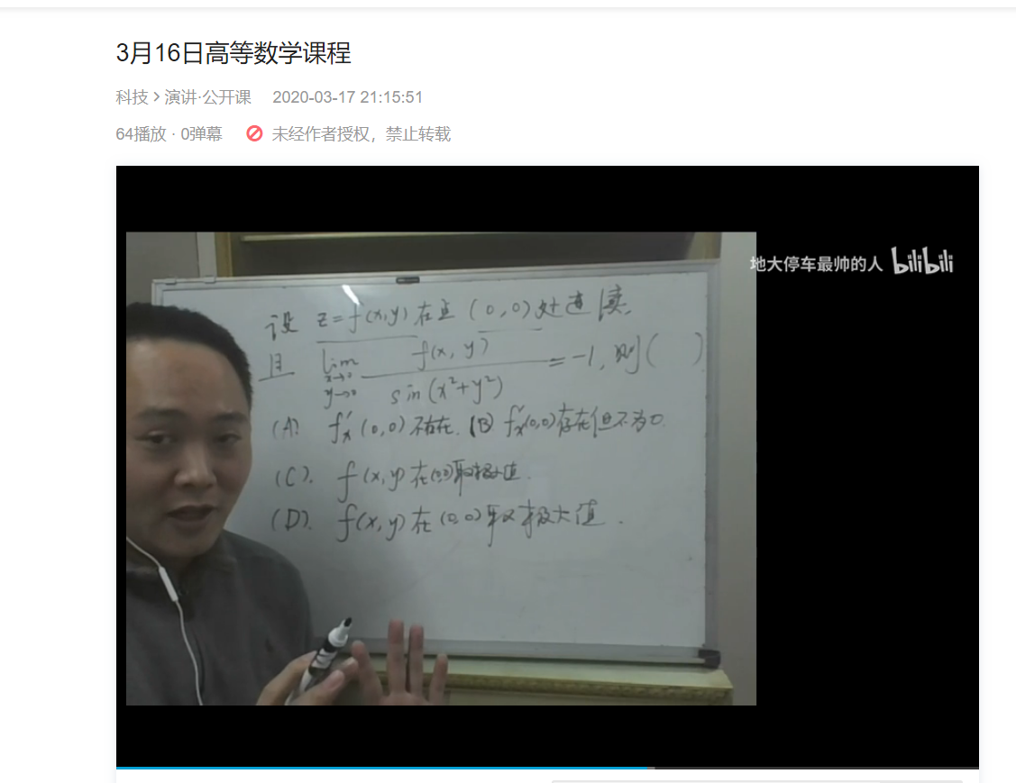 谈到他的直播平台他笑了,学生们一致推荐在Bilibili平台授课,并一起将账号命名为“地大停车最帅的人”。他的课堂人数是120人,直播开课后,每次网上听课的人数都达到3000人左右,人均听课时长每次都接近1.5小时。对此杨老师感到高兴,因为这样可以帮助到更多想学好数学的学生,他也想让更多人真正感受到数学的美,这是对社会很有益处的事情。