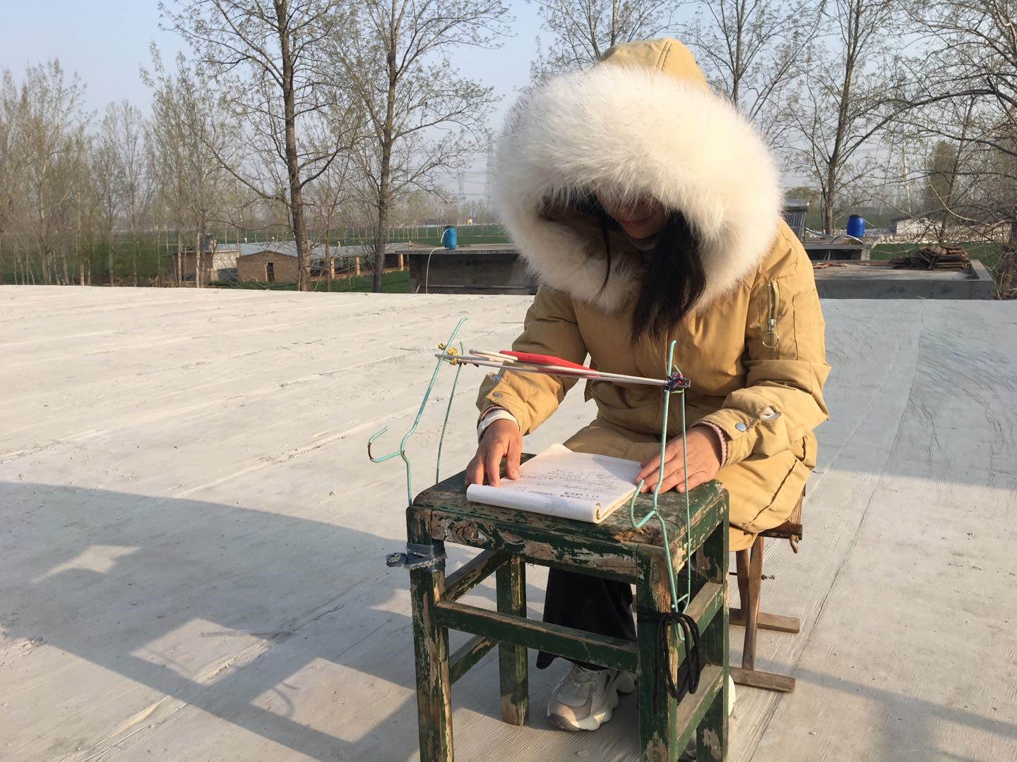 寒假期间,陈玲老师按照计划回山东老家过新年,属于偏远村庄,家里没安装网络,而且手机信号不太好,在屋子里用手机流量视频时画面会卡死。自从收到要按照正常开学时间进行网上教学的通知后就开始发愁。四个班的学生,加上重修生共一百多人,怎么也不能让同学们大学物理的学习落后啊。可是家里没有课本,电子课件都在办公室的电脑里面,现在只有一部手机,如何上课?陈老师每天要花大量的时间来学习同事上传的电子资料备课,然后按照自己的讲课习惯和思路认真手写教案。因为是首次尝试网络直播,陈老师写好课件后投屏方式给学生进行讲解。投屏时必须解决网络不畅和手机晃动两个问题,陈老师只好到房顶上给学生上课,用一个凳子上面绑三个衣架作为固定手机的架子。二三月份山东老家的天气还比较寒冷,房顶上风呼呼地刮,冻得鼻涕直抽,学生们听到抽鼻涕的声音,提醒老师多喝热水。陈老师表示为学生的懂事感到欣慰,只要学生愿意听,忍耐一会又算得了什么呢。陈老师有时忘记带水去楼顶也不敢下来取,因为家里有两个小孩,其中一个只有三岁,怕她们看见了要缠着而影响上课。