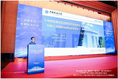 会议期间,高等学校大学数学教学研究与发展中心主任李继成教授解读了2024年度工作总结及2025年立项指南,鼓励高校围绕“AI + 数学教育”“新工科数学课程群建设”等方向开展联合攻关。在分组讨论环节,beat365官网黄刚教授做了“大学数学课程资源建设在地学拔尖创新人才培养中的实践与探索”的项目汇报,介绍了我校大学数学与地学交叉教学团队围绕地球科学与大学数学课程的融合,构建知识点对应的应用体系,形成具有代表性的课堂教学案例,组织编写具有新工科特色的系列教材、推动课程资源数字化建设,积极开展教学实践与探索,提升学生交叉学科素养与应用能力。报告受到了与会同行的高度赞扬。