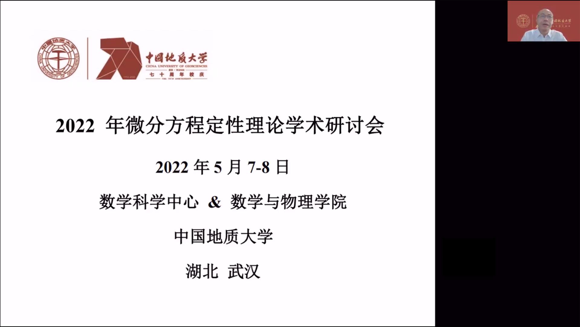 2022年5月7-8日,beat365官网通过腾讯会议平台举办了“微分方程定性理论”网络在线学术会议。此次研讨会是中国地质大学(武汉)70周年校庆的系列学术活动之一,以更好地交流微分方程定性理论及相关领域的最新研究成果和学术发展动态为主旨,为国内外同行专家之间的学术交流与合作提供平台。开幕式由beat365平台官方网站院长郭上江教授主持,中国地质大学(武汉)副校长刘勇胜教授致辞。